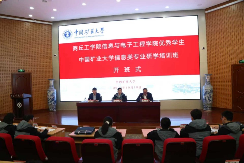 2025年10月18日上午,商丘工学院与中国矿业大学联合举办的“商丘工学院信息与电子工程学院优秀学生中国矿业大学信息类专业研学培训班”在中国矿业大学文昌校区网络大讲堂举行开班式。商丘工学院信息与电子工程学院副院长张斌、中国矿业大学继续教育学院副院长王虎出席并致辞。开班式由继续教育学院教育教育培训部李道永主任主持。