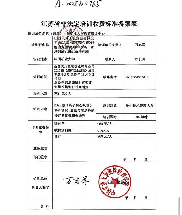 A.2025110765-山西天地王坡煤业有限公司2025版《煤矿安全规程》解读专题培训班、后备干部培训班、班组长培训班