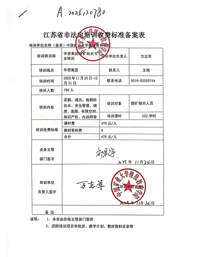 A.2025120780-华晋集团煤矿相关专业培训