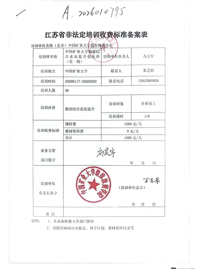 A.2026010795-中国矿业大学俄语综合素质提升强化班(第一期)