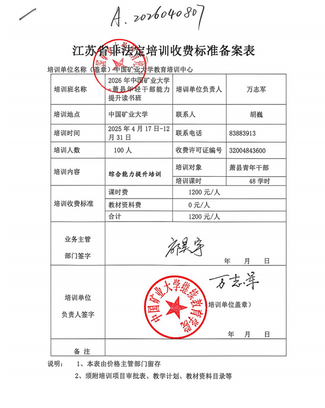 A.2026040807-2026年中国矿业大学萧县年轻干部能力提升读书班