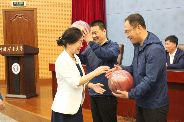 典礼上崔岚副主任向班级代表赠送了体育用品。