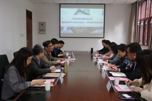 周兆农副院长代表浙江大学继续教育学院对中国矿业大学教育培训中心一行人的到来表示热烈的欢迎,周院长介绍了浙大干训基地、继续教育学院以改革创新推动教育培训事业快速转型发展的历程,着重介绍了运行机制、队伍建设、课程研发、师资管理、现场教学、信息化建设、质量保障等方面的改革举措和成效。