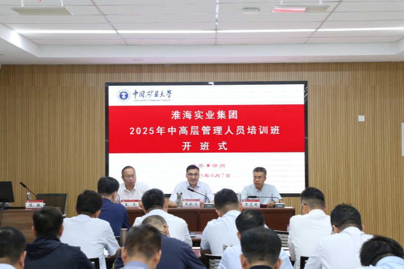 9月7日,淮海实业集团2025年中高层管理人员培训班(第一期)在我校顺利开班。淮海实业集团党委书记、董事长王振江,中国矿业大学继续教育学院院长万志军出席开班仪式,开班式由继续教育学院副院长王虎主持。