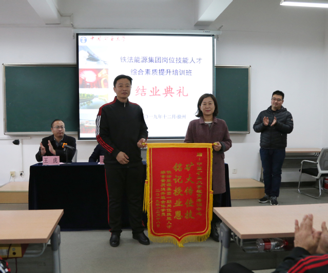 最后,学员代表向学校赠送了锦旗。来自铁能集团晓明矿、大隆矿、晓南矿、小青矿、大兴矿、小康矿、大平矿、矿山救护大队、供电部、机械公司、煤层气公司、煤矸石电厂、热电厂、热力供暖公司、运输部的62名学员参加了结业典礼。