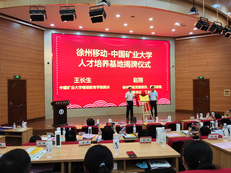 会上,中国矿业大学继续教育学院院长王长生和徐州移动副总经理赵翔共同进行了人才培养基地揭牌仪式。