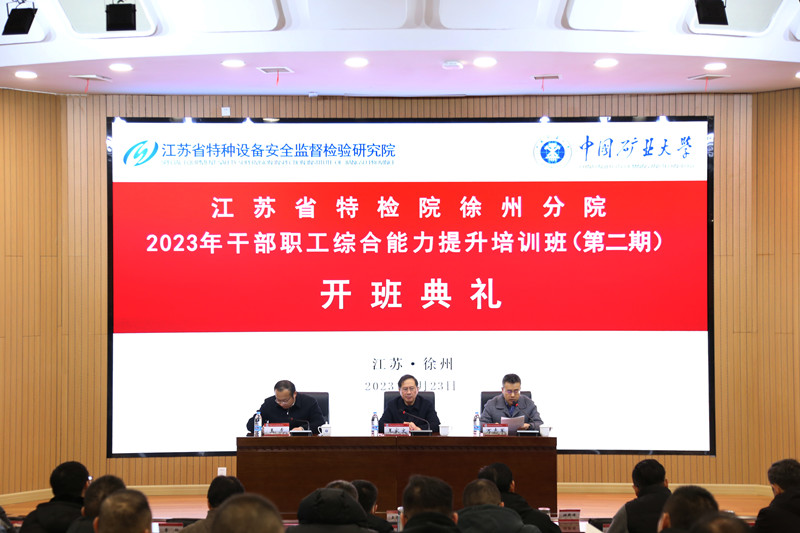 2月23日上午,由江苏省特种设备安全监督检验研究院徐州分院委托我校举办的江苏省特检院徐州分院2023年干部职工综合能力提升培训班(第二期)在文昌校区顺利开班。江苏省特种设备安全监督检验研究院徐州分院院长王家文、中国矿业大学继续教育学院院长万志军出席了开班典礼,此次典礼由中国矿业大学继续教育学院副院长王虎主持。