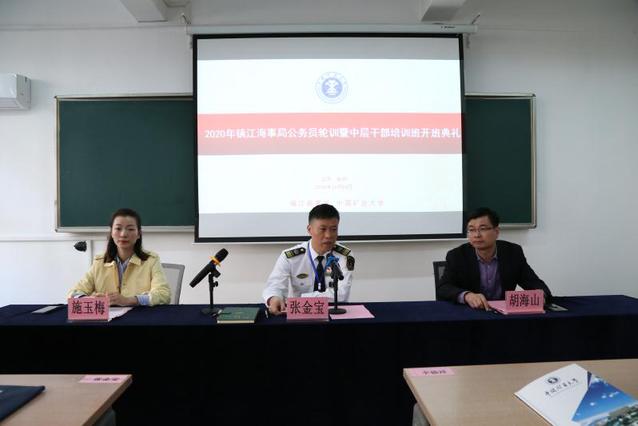 10月19日下午,2020年镇江海事局公务员轮训暨中层干部培训班(第二期)在我校如期举办。镇江海事局局长张金宝,中国矿业大学继续教育学院党委副书记、副院长胡海山出席仪式。