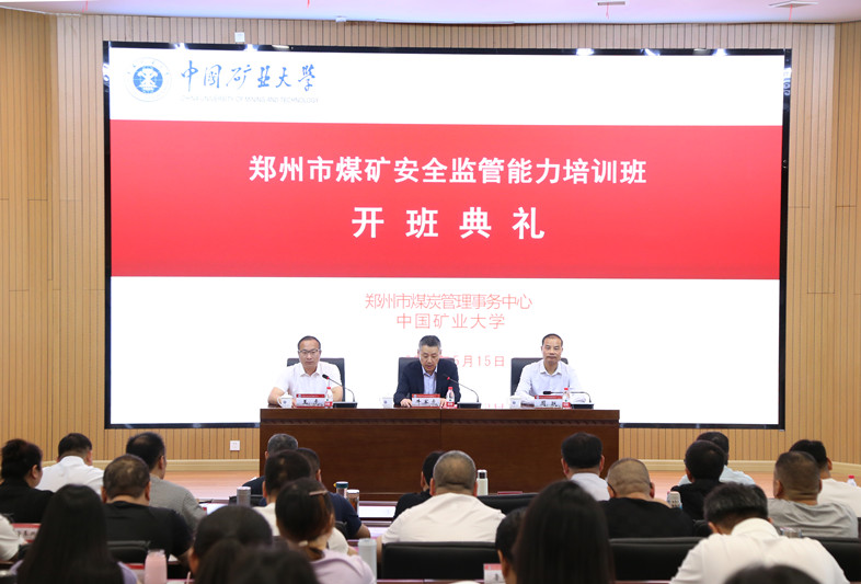 2023年5月15日上午,郑州市煤矿安全监管能力培训班在我校文昌校区开班。郑州市煤炭管理事务中心党委书记、主任牛军虎,中国矿业大学继续教育学院党委书记周跃参加了开班典礼。典礼由中国矿业大学继续教育学院副院长王虎主持。