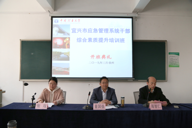 3月18日下午,宜兴市应急管理系统干部综合素质提升培训班(第一期)在中国矿业大学文昌校区开班。宜兴市应急管理局局长董国强,中国矿业大学职业与继续教育部部长、应急管理培训学院院长周智仁出席开班典礼。