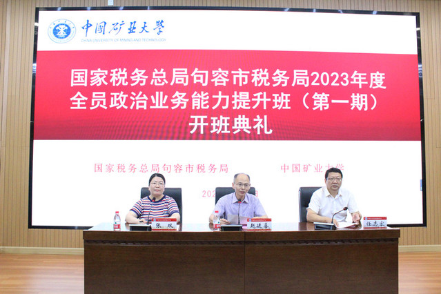 2023年7月3日下午,国家税务总局句容市税务局2023年度全员政治业务能力提升班(第一期)在文昌校区开班。国家税务总局句容市税务局一级主办、副局长赵廷喜,中国矿业大学继续教育学院副院长任志宏参加了开班典礼。