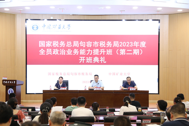 2023年7月10日下午,国家税务总局句容市税务局2023年度全员政治业务能力提升班(第二期)在文昌校区开班。国家税务总局句容市税务局党委委员、副局长郭兵,中国矿业大学继续教育学院副院长王虎参加了开班典礼。仪式由中国矿业大学教育培训中心项目部负责人张双老师主持。