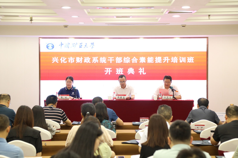 2023年7月17日上午,兴化市财政系统干部综合素能提升培训班在我校开班。兴化市财政局党组成员、机关党委书记、副局长周德富,中国矿业大学继续教育学院副院长任志宏参加了开班典礼。
