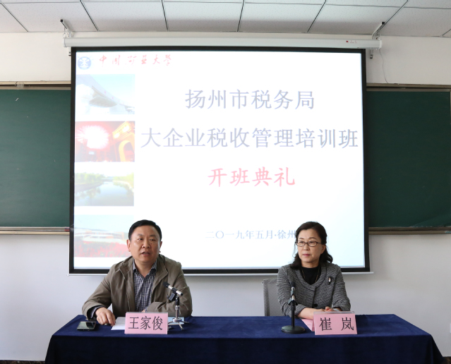 5月6日下午,扬州市税务局大企业税收管理培训班在我校文昌校区开班。扬州市税务局第一分局局长王家俊、中国矿业大学教育培训中心副主任崔岚出席开班典礼。