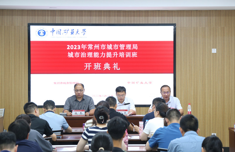 2023年8月21日上午,2023年常州市城市管理局城市治理能力提升培训班在文昌校区开班。常州市城市管理局党组成员,市园林局专职委员史小平 ,中国矿业大学继续教育学院副院长王虎参加了开班典礼。
